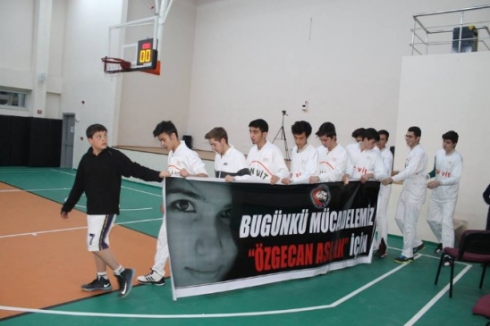 2014-2015 Genç Erkekler Basketbol Kulüp Müsabakaları il birincisi olan Mücadele Sporları Kulübü Erkek Basketbol Takımı, sahaya "Bugünkü mücadelemiz Özgecan Aslan için" yazılı pankartla çıktı