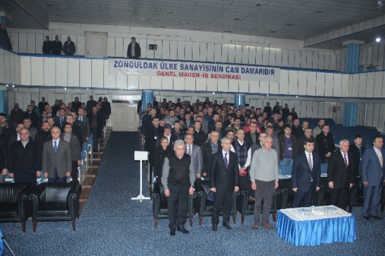Kozlu Şube Genel Kurulu’nda emekli maden işçisi Kadir Tuncer ile çok sayıda Kozlu Şube Delegesi birer konuşma yaptılar.