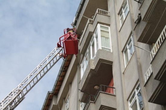 Ekipler, itfaiye merdiveni vasıtasıyla binalarda oluşan ve vatandaşlar için tehlike oluşturan buz sarkıtlarını temizledi.
