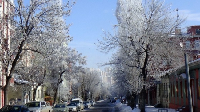 Kars’ta gece ve sabah erken saatlerde etkili olan sisin ardından cadde ve sokaklarda bulunan ağaçlar beyaza büründü. Kırağı tutan ağaçlar vatandaşları büyüledi.