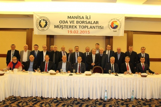 Manisa İlinde yer alan Ticaret ve Sanayi Odaları, Borsa Başkanları, Meclis Başkanları ve Manisa Güçbirliği platformunun Başkanlarının katıldığı istişare toplantısı Anemon Otel’de yapıldı. Manisa Ticaret ve Sanayi Odası Meclis Başkan Hayati Dolman’ın başkanlığında gerçekleşen toplantıda MHP Milletvekili aday adayı Yaşar Coşkun oda ve borsa başkanlarıyla bir araya geldi. Coşkun, toplantıya katılan oda, borsa ve güçbirliği platformu başkanlarından destek istedi. Toplantıya katılan başkanlar TOBB’a bağlı odalar olarak aralarından bir vekil çıkarmak istediklerini belirten ve MHP Genel Başkanı Devlet Bahçeli,TOBB Başkanı Rifat Hisarcıklıoğlu ile Büyükşehir Belediye Başkanı Cengiz Ergün’e verecekleri bir deklarasyona imza atarak Yaşar Coşkun’a tam destek olduklarını beyan ettiler.