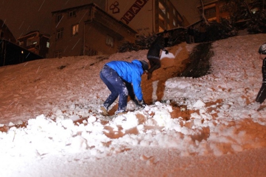 İstanbul’da okulların tatil olmasını fırsat bilen gençler, karın keyfini çıkarttı. Beyoğlu’nda toplanan bir grup genç, kızak ve karton parçalarıyla bir rampadan aşağıya kayarak doyasıya eğlendi. Tehlikeye aldırış etmeden kontrolsüz bir şekilde kayan gençler yürekleri ağızlara getirdi. Yokuşta kaydıktan sonra yere düşerek yuvarlanan gençler, hiçbir şeye aldırış etmeden doyasıya eğlendi. Grubun içerisinde bir genç ise “Babi” isimli köpeğiyle kaydı. Oldukça renkli görüntüler oluşturan gençler, Kar yağışından dolayı memnun olduklarını belirterek, “Keşke her gün tatil olsa” dedi.