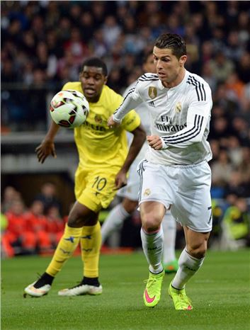 İspanya Birinci Futbol Ligi (La Liga) inde Real Madrid ile Villareal, Santiago Bernabeu Stadı'nda karşılaştı. Bir pozisyonda Real Madrid'den Ronaldo ile Villareal'den Campell mücadele etti.Muhabir: Evrim Aydın