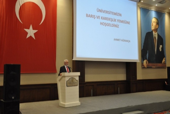 Mardin Artuklu Üniversitesi Rektörü Prof. Dr. Ahmet Ağırakça tarafından üniversitede görev yapan akademik ve idari kadro mensuplarına yönelik düzenlediği ’Barış ve kardeşlik’ yemeği samimi ve sıcak bir atmosferde geçti. Yemekte teşekkür konuşması yapan Rektör Ağırakça, iki aylık süre içinde Mardin Artuklu Üniversitesi için yapılan akademik, fiziki ve altyapı çalışmalar hakkında ayrıntılı bilgiler verdi. Konuşmasında sık sık birlik, kardeşlik ve sevgi vurgusunu yapan Prof. Dr. Ahmet Ağırakça, uzlaşının, dayanışmanın Mardin’de bir gelenek olduğunu ve bu kadim şehrin binlerce yıllık sokaklarında dolaşırken bu geleneğin birçok kültürü kucakladığını ve sımsıkı bağrına bastığını ifade etti. Mardin Artuklu Üniversitesi’nin, bu kadim geleneğin doğal mirasçısı olduğunu ve çok kültürlülüğün şekillendirdiği Mardin’de dilleri, dinleri ve kültürleri el ele tutuşturup, üniversitede bilimle buluşturacağının altını çizen Ağırakça, bu ilkelerle hareket eden, bilim üreten, sevginin ve barışın dilini kullanan, herhangi bir gruba ya da kitleye ayrıcalığın tanınmadığı bir üniversite olmanın teminatını verdi. Konuşmasında, akademide cepheleşmenin ve ayrışmanın ortaya çıkardığı karartıcı tablo yerine bilgiyi ön planda tutan, bilimle anılan ve kendi bünyesine katacağı yeni fakülte ve bölümlerle takdir edilen bir üniversite için herkesin el birliğiyle mücadele vereceğine inancının tam olduğuna değinen Ağırakça, "Yönetimimizde ayrımcılık olamaz, Hepimiz bir tarağın dişleri gibiyiz ve gönlümüz herkesi kucaklayacak kadar geniştir. Bizim tek gayemiz üniversitenin terakkisi, bilim ve araştırma yuvası olmasıdır. Sevgi, kardeşlik ve birlik ortamı sağlanırsa ilmin önünde coğrafi, fiziksel veya zihinsel bir sınırın olmadığını düşünüyor ve hep birlikte bunu sağlayacağız" dedi.
