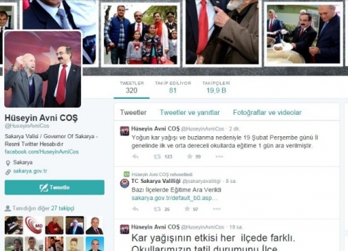 Sakarya Valisi Hüseyin Avni Coş, dün geceden bu yana etkili olan kar yağışı sonrası okulların bir gün daha tatil edildiğini twitter hesabından duyurdu.