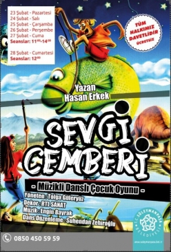 Belediye Kültür Merkezi’nde sahne alacak olan danslı müzikli çocuk oyunu, 23-28 Şubat tarihleri arasında hafta içi her gün 11:00 / 14:00 olmak üzere iki seans 28 Şubat Cumartesi günü ise saat 12:00’de tek seans oynanacak.