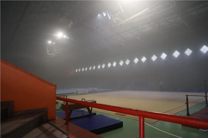 Spor salonunda çıkan yangın, cimnastik yarışmasını erteletti