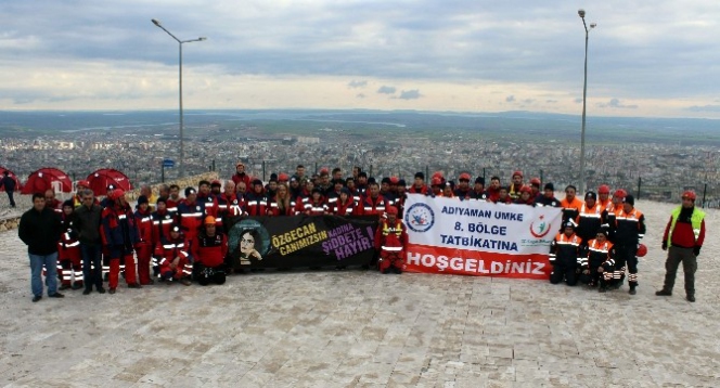 Tatbikatlar sonunda katılımcılara sertifikaları verilirken, UMKE ekipleri tarafından açılan pankartta ise Özgecan Aslan cinayetine dikkat çekildi.