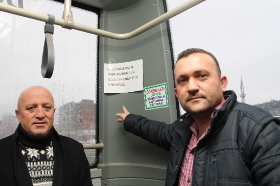 Mersin’in Tarsus ilçesinde hunharca katledilen Özgecan Arslan için Ünye Yeşil Hat Dolmuş şoförleri de duyarlılık gösteriyor. Kendi meslektaşlarının böyle bir olaya karışmasından derin üzüntü duyduklarını belirten Yeşil Hat Dolmuş Durağı İkinci Başkanı Ömer Alparslan, araçlarına astıkları pankartlarla tepkilerini dile getiriyor.