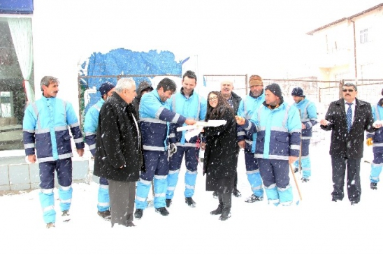 Yahyalı İlçe merkezi ve mahallelerinde 50 santimetreye yaklaşan kar kalınlığının hayatı olumsuz etkilememesi için Yahyalı Belediyesinin oluşturduğu karla mücadele ekipleri yol açma çalışmalarını sürdürüyor. Yahyalı Belediye Başkanı Esat Öztürk’ün Ankara’da olması sebebiyle başkanlığa vekalet eden Belediye Meclis Üyesi Merve Sarıoğlu, Meclis Üyeleri Mehmet Keçibaş ve Ramazan Yapıcı ile birlikte ilçede çalışmalarını devam eden karla mücadele ekiplerini ziyaret ederek, çalışmalar hakkında bilgi alıp, ekiplere baklava ikram ettiler.