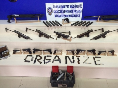 Alınan bilgiye göre, Adana Emniyet Müdürlüğü Kaçakçılık ve Organize Suçlarla Mücadele Şube Müdürlüğü ekipleri, kaçakçılık suçunu işlemekte olan suç örgütlerine yönelik operasyon düzenledi. İl genelinde yapılan operasyonda, 5 adet "Tomson" diye tabir edilen otomatik tüfek, 10 adet şarjör, 12 adet tabanca, 26 adet şarjör, 24 adet tabanca mermisi, 2 adet otomatik av tüfeği ve 12 adet av tüfeği fişeği ele geçirildi.