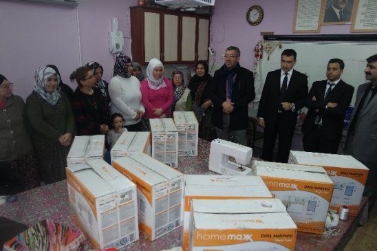 Eskişehir Sarıcakaya Belediye Başkanı Faruk Güler, halk eğitimine katılanlara dikiş makinesi desteği verdi.