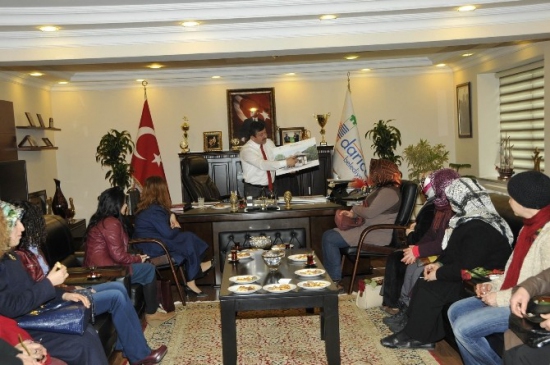 Kadın Kolları Başkanı Hülya Kodek ve yeni yönetimine nazik ziyaretlerinden dolayı teşekkür eden Başkan Karabacak görevlerinde başarılar diledi. Başkan Karabacak görev yaptıkları süre boyunca kadınlara yönelik bir çok önemli projeyi hayata geçirdiklerinin altını çizerken, yeni dönemde de bu yönde çalışmaları olduğunu müjdeledi. Başkan Karabacak, ”Yakın zamanda açılışını gerçekleştireceğimiz Kültür Merkezi’nde bayanlara yönelik spor aktivitelerinin düzenlenebileceği bir alan bulunuyor. Bunun yanısıra değişik mahallelerde devam eden fitness kursları, dikiş nakış kursları ve kültür evlerinde gerçekleştirdiğimiz etkinliklerle bayanların gelişimlerine katkı sunmayı amaçlıyoruz. Bayanlara yönelik yeni projelerle sizlere hizmet etmeye devam edeceğiz” dedi.