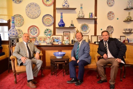 Kütahya Belediye Başkanı Kamil Saraçoğlu, ünlü çini ustası Mehmet Gürsoy’u ziyaret etti.