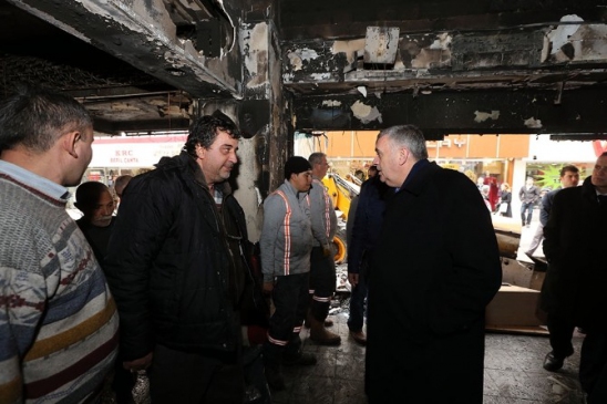 Başkan Toçoğlu, “Meydana gelen olayda herhangi bir can kaybının yaşanmamış olmasına şükrediyoruz. İlk incelemeler neticesinde yangından 12 iş yeri etkilendi. Maddi zarara uğrayan bölge esnafına elimizden gelen desteği sağlayacağız” diye konuştu. Ziyaretin devamında Başkan Zeki Toçoğlu, dükkanları zarar gören bölge esnafına geçmiş olsun dileklerini iletti.