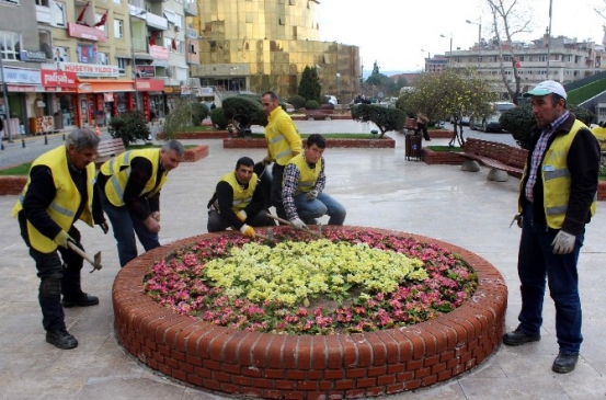 Aydın Büyükşehir Belediyesi’nin park ve bahçelerden sorumlu bakım ekibi şehri adeta bir gelin gibi süslemek ve şehre gzel bir görünüm verebilmek için gece gündüz çalışıyor. Bu yıl hava sıcaklıklarının sıfırın altına düşmesi nedeniyle soğuk vuran çiçekleri yenileyen ekip, kent meydanının yanı sıra şehrin cadde ve sokaklarını çiçeklendirip bitkileri de gözü gibi bakıyor.