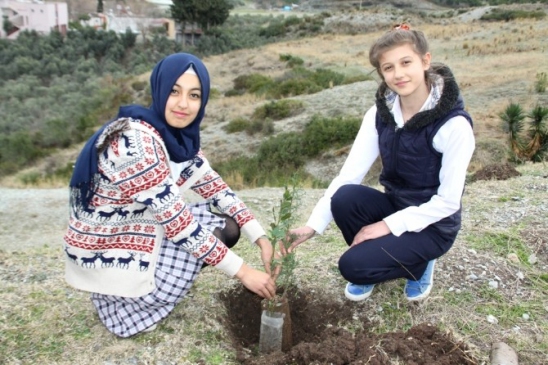 Mahmutlu Mahallesi TOKİ evlerinin bulunduğu tepede oluşturulan Özgecan Aslan Hatıra Ormanı’na 500 adet fidan dikildi.