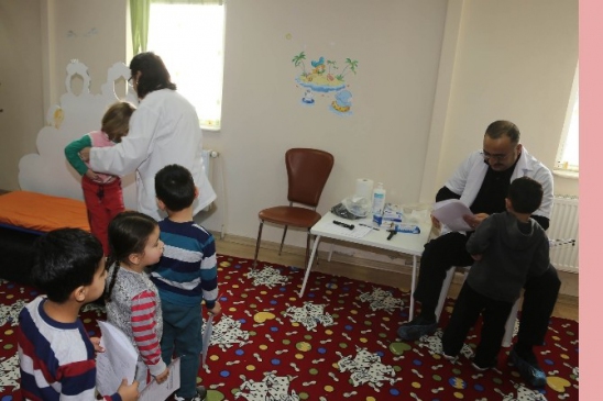 Eskişehir Halk Sağlığı Müdürlüğü’nde görevli doktor ve hemşireler tarafından Büyükşehir Belediyesi Esçocuk Evi’nde eğitim alan öğrencilere sağlık taraması yapıldı. Öğrencilerin fiziksel muayene, ateş, nabız, tansiyon, kulak burun boğaz kontrolü, skolyoz, iskelet sistemi bozuklukları, kişisel hijyen ve göz muayenesi gibi kontrolleri gerçekleştirildi. Büyükşehir Belediyesi Esçocuk Evi’nde yapılan sağlık taramasının ardından öğrenci velilerine de kişisel hijyen konularında eğitimler verildi.