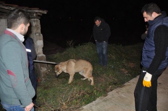 Kazayı gören sürücüler, can çekişen yaralı köpeği kendi imkanları ile yol kenarına çekti. Haber verilmesi üzerine kaza yerine emniyet ekipleri de geldi.