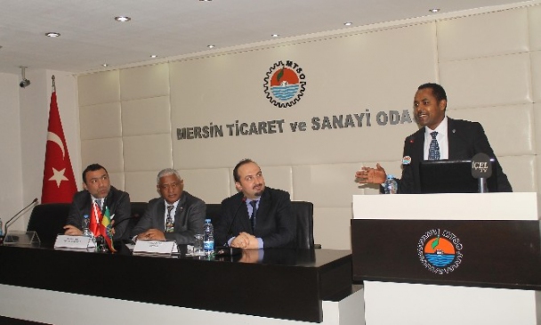 Etiyopya Büyükelçisi Ayalew Gobezie ise kendilerine bu fırsatı veren herkese teşekkür ederek, "Buradan olmaktan çok memnunuz. Mersin çok güzel bir şehir. Ekonomik açıdan da özellikle limanın burada olması Mersin’i çok önemli kılıyor. 3 gündür bu ziyaretlerimiz devam ediyor. Adana, Tarsus ve Mersin’de. Birçok iş dünyasından gruplarla bir araya geldik. Burada bulunma amacımız Etiyopya’da yatırım fırsatları ve destekler konusunda bilgilendirme yapmak ve tabi davette bulunmak. Neden Etiyopya’ya yatırım yapılmalı. Türkiye’den 300’den proje şu anda Etiyopya’da. Bunlardan 96’sı başlamış durumda, devam ediyor. Bu projelerden şu anda Türkiye olan ticaret hacmi 3 milyar dolar seviyesinde. Dolayısıyla bu firmalar neden oradalar, neler yapıyorlar sorusu önemli. Bu sorunun cevabı olarak da özellikle bürokratik işlemlerin Etiyopya’da neredeyse yok denilecek kadar az olması, suç oranlarının çok düşük olması, yatırımcılara devlet desteklerinin ve onların işlerini kolaylaştıracak tüm imkanların sağlanması şeklide sıralayabiliriz. Hepinizi Etiyopya’ya davet ediyorum. Çünkü Etiyopya güvenli ve barış dolu bir ülke. Ekonomisi düzenli bir ülke" şeklinde konuştu.