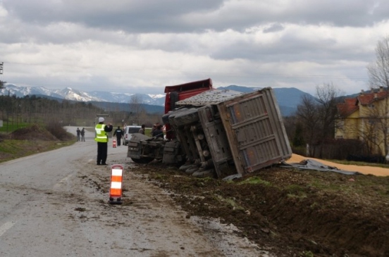 Edinilen bilgilere göre, Taraklı istikametinden Göynük istikametine doğru gelmekte olan Nevzat Akıncı (55) idaresindeki 41 SD 329 plakalı TIR, Taraklı Göynü karayolu 5. kilometresinde Mahdumlar Mahallesi yolu sapağında sürücünün direksiyon hakimiyetini kaybetmesi sonucunda devrildi. Devrilen TIR’ın dorsesinde bulunan mısır yola savruldu. Savrulan mısır karayolunun kenarında tarlaya dağıldı. Kazada TIR sürücüsü Nevzat Akıncı yaralandı. Olay yerine gelen sağlık ekipleri yaralıyı Geyve Devlet Hastanesine kaldırdı. Kazayla ilgili soruşturma başlatıldı.