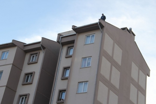 Olay merkez Osmangazi ilçesi’nde bulunan Yenikent toplu konutlarında meydana geldi. Sabah saatlerinde çatıya çıkan İbrahim K. oturduğu yere engelli rampası bulunan belediye otobüsü gelmesini istedi. İbrahim K.’nın yürüme engelli oğlu olduğu ve özel halk otobüslerinde yeterli tertibat olmadığı için oğlunun binemediği öğrenildi.