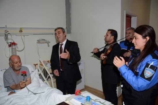 Toplum içerisinde farkındalık oluşturmaya yönelik sosyal ve kültürel faaliyetler düzenlenerek, toplumumun günlük yaşamda farkına varamadığı ancak yaşadığı sıkıntılar, zorluklar, engeller gibi birçok nedenle toplumdan soyutlanmak zorunda kalan insanların, topluma ve yaşama entegrasyonunu sağlamak, toplumla birlikte güven içerisinde yaşamalarını temin etmek ve bu zor süreçte onlara destek olmak amaçlıyla Toplum Destekli Polislik Şube Müdürlüğü personeli tarafından ‘Size Olan Sevgimiz Sonsuzdur’ sloganı ile Onkoloji Hastanesi’nde yetişkin servisinde tedavi gören tüm hasta ve hasta yakınlarına müzik eşliğinde karanfil dağıtıldı.