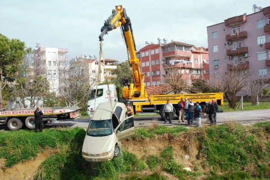Otomobil kurtarıcı tarafından kanaldan çıkarılırken, kazayla ilgili soruşturmanın devam ettiği belirtildi.
