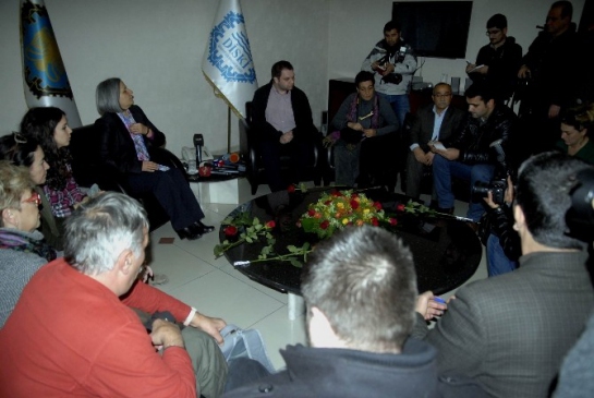 Aralarında, Yunanistan’da iktidar partisi olan Syriza Partisi üyelerinin de bulunduğu bir heyet, Diyarbakır Büyükşehir Belediyesi Eşbaşkanı Gültan Kışanak’ı ziyaret etti. Ziyarette heyet adına konuşan Glorgos Karatsioonbanis, Kobani için yakın bir temas kurmak adına bölgeye geldiklerini söyledi.