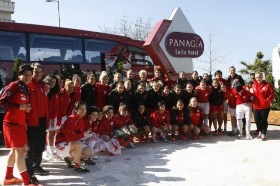 Trabzon Panagia Suite Otel’de birlikte kamp yapan Türk ve Gürcü Bayan Milli Futbol Takımları bugün saat 14.00’da Hüseyin Avni Aker Stadı’nda oynayacakları maç için birbirlerine başarılar diledi. Kamp yaptıkları otelden otel yetkilisi Muharrem Durmuş tarafından çiçeklerle uğurlanan milliler objektiflere de birlikte poz verdiler. Muharrem Durmuş, Türkiye Bayan Milli Takımı ile Gürcistan Bayan Milli Takımlarını, birlikte ağırlamaktan mutluluk duyduklarını belirterek "Spor’un dostluk, barış ve kardeşlik olduğunun en güzel örneğini sergileyen iki takımın sporcularına ve yöneticilerine çok teşekkür ediyorum. Burada bulundukları süre boyunca misafirlerimizi en iyi şekilde ağırladığımızı düşünüyorum. İki takım oynayacakları maç öncesi stadyuma birlikte giderek spor kamuoyuna önemli bir mesaj verdiler" dedi.