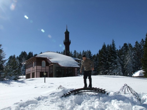biri de Uludağ 2.Bölgede bulunan Çobankaya Camisi oldu. Avlusu karla kaplı camiye girmek için kapıyı kullanmaya gerek kalmadığı görüldü.