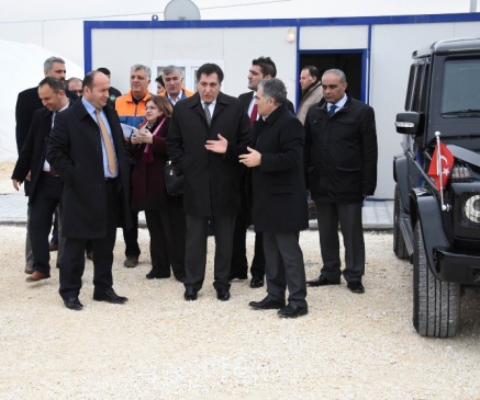 Şanlıurfa Valisi İzzettin Küçük, Şanlıurfa’nın Suruç ilçesinde yapılan 35 bin kişi kapasiteli Suruç Konaklama Tesisleri’nde incelemelerde bulundu. Tesislerin son durumu hakkında Kaymakam Abdullah Çiftçi’den bilgi alan Vali İzzettin Küçük, kamptaki sosyal donatı alanlarında yapılan çalışmaları yerinde gördü. Tesislerde yer alan hastaneyi ziyaret eden Vali Küçük, çadır kentte doğan çocuklarla yakından ilgilendi. Hastanedeki Suriyelilerle de görüşen Vali İzzettin Küçük, kendisine sorunlarını anlatan Suriyelileri dinleyerek çözümü için gerekli talimatları verdi. Market, eğitim, çocuk oyun ve diğer sosyal donatı alanlarını da gezen Vali Küçük, kamp yetkililerine de teşekkür etti. Çadır kent gezisine Vali Küçük ve Kaymakam Çiftçi’nin yanı sıra Vali Yardımcısı Aylin Kırcı Duman, Afet ve Acil Durum Müdürü Mahmut Sönmez ve tesis yetkilileri de eşlik etti. Vali Küçük, çadırkent gezisinin ardından Eyyübiye ilçesindeki Ayhan Şahenk Teknik ve Endüstri Meslek Lisesi’ni gezdi. Şu anda 900 öğrencisi bulunan okulun genel durumu hakkında bilgi alan Vali Küçük, okulun bölgedeki eğitime önemli katkısı olacağını belirtti. Vali İzzettin Küçük’ün okul gezisinde ise Vali Yardımcısı Uğur Sezer ve Milli Eğitim Müdürü Metin İlci de bulundu.