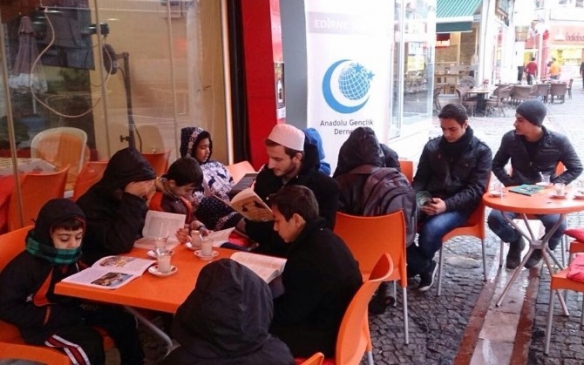 Anadolu Gençlik Derneği Edirne Şubesi Ortaokullar Komisyonu, Tahmis Meydanı’nda, ’Zamansız ve Mekansız Okumalar’ isimli etkinlik gerçekleştirdi.