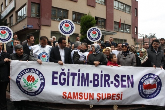 Eğitim-Bir-Sen Samsun Şube üyeleri 28 Şubat’ın yıl dönümü münasebetiyle Samsun Öğretmen Evi önünde slogan atıp basın açıklaması düzenledi. Basın açıklamasını okuyan Eğitim-Bir-Sen Samsun Şube Başkanı Nejdet Güneysu, “Türkiye Cumhuriyeti tarihi, 20. yüzyıl boyunca, milli iradenin darbelerle hükümsüzleştirildiği ve darbe anayasalarıyla vesayet altına alınmaya çalışıldığı dönemlerle ele alınmıştır. Bu dönem bir darbeler ve muhtıralar tarihi olarak ele alınabileceği gibi milli iradenin varlık mücadelesi olarak da ele alınabilir. 28 Şubat postmodern darbesi, oluşturduğu maddi ve manevi tahribat bakımından milletimizi onlarca yıl geriye götüren bir etki ortaya koymuştur. 28 Şubat karanlığında gerçekleştirilen yolsuzluklar, usulsüzlükler, hortumlamalarla milletin bütün bir maddi varlığı tarumar edilerek ekonomik yönden tahribat yapılmıştır. Ancak asıl tahribat değerler üzerinde gerçekleştirilmiş, milletimizin bin yıllık medeniyet değerlerinden koparılması ve nesillerin köklerinden habersiz yetiştirilmesi için düşmanca tutum takınılmış ve hak-hukuk-adalet gibi kavramların ayaklar altına alındığı uygulamalara imza atılmıştır. Postmodern darbenin asıl hedefi dindarlar olmuş, asıl tahribat dini kurumlar üzerinde gerçekleştirilmiştir. İmam hatip liseleri ve Kur’an kurslarının kapatılması anlamına gelen katsayı adaletsizliği ve 8 yıllık kesintisiz eğitim uygulamaya sokulmuş, kamuda çalışan başörtülü öğretmenlerin görevine son verilmiş, mütedeyyin kamu personeli soruşturmalar, sürgünler ve göreve son vermelerle zulme uğratılmıştır” dedi.