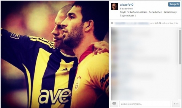Instagram hesabından Arda Turan ile çekilmiş fotoğrafını paylaşan Alex, derbi haftasına göndermede bulunarak, "Böyle bir haftanın özlemi...Tadını çıkarın" yazdı. Alex, 8 Mart 2006 tarihinde Galatasaray’a attığı frikik golünün videosunu da paylaştı.