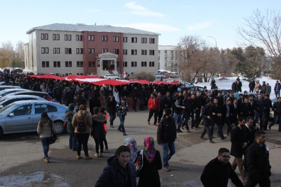 Atatürk Üniversitesi Öğrenci Konsey Başkanlığı tarafından düzenlenen organizasyonda, değişik fakültelerden çok sayıda öğrenci, bilim ve gençlik anıtı önünde toplandı. Dev Türk bayrağı eşliğinde öğrenciler, kampüs içerisinde yürüyüş yaparak slogan attılar.