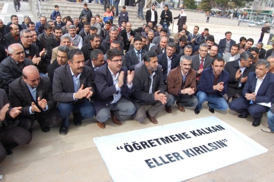Şanlıurfa’da Memursen üyeleri, öğrenci ve sivil kişiler tarafından darp edilen öğretmene destek için eylem yaptılar.