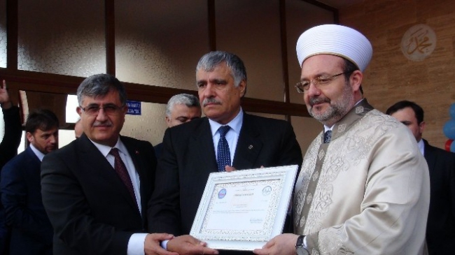 Manavgat ilçesinde yapımı tamamlanan Rukiye Mustafa Avşaroğlu Camii’nin açılışına Diyanet İşleri Başkanı Mehmet Görmez, AK Parti Antalya Milletvekili Vecdi Gönül, Antalya Büyükşehir Belediye Başkanı Menderes Türel, Antalya Müftüsü Osman Artan, AK Parti Antalya İl Başkanı Rıza Sümer, Manavgat Kaymakamı Emir Osman Bulgurlu, Manavgat Belediye Başkanı Şükrü Sözen ve vatandaşlar katıldı. Kur’an-ı Kerim tilavetiyle başlayan törende konuşan Diyanet İşler Başkanı Görmez, Ayet-i Kerime’de ‘Allah sizi topraktan yerden yarattı ve sizden yeryüzünü imar etmenizi istedi” denildiğini hatırlatarak, “Yeryüzünü imar etmek bütün şehri betonlarla doldurmak hiç değildir. Yeryüzünü imar etmek yerin altında elektrik ve su şebekeleri kurmak da değildir. Tüm bunlarla birlikte asıl yeryüzünü imar etmek yürekler arasında merhamet şebekeleri kurmaktır. Yeryüzünü imar etmek insanın gönül dünyasını imar etmektir. Kalbimizi, ruhumuzu imar etmektir. Kalp ve ruh imar edilmeden insanlar yeryüzünü imar edemezler” dedi.