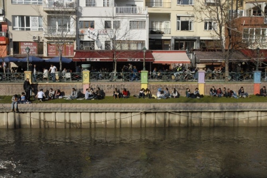 Eskişehir’de baharın gelmesi ve güneşin yüzünü göstermesiyle birlikte vatandaşlar, Porsuk Çayı’nda soluğu aldı.