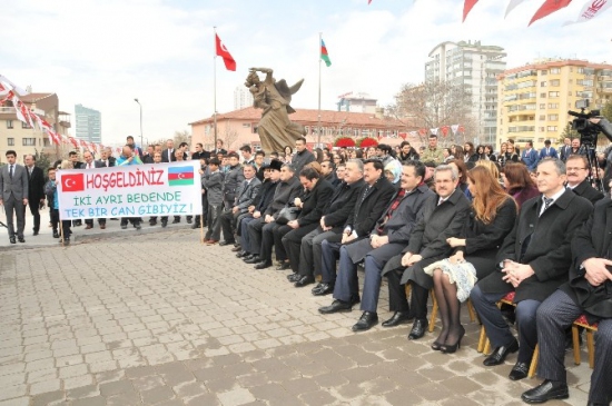 Başkan Mustafa Ak ise, 1992 yılının Şubat ayının soğuk bir kış gününde Hocalı’da yapılan katliamın yürekleri dağladığını vurgulayarak, “Rus ordusunun desteklemiş olduğu Ermeni çetelerinin yaptığı bir katliam, çocuk, yaşlı, kadın demeden herkesi öldürdükleri acı bir olay yaşandı. Bu olay tarihimize bir kara sayfa olarak da işlenmiş durumda. Biz iki devlet tek millet bilinciyle bu acıyı yüreğimizde hissettik ve bu hissiyatımızı yaşatmak adına bir anıt inşa ettik. Her yıl Azerbaycan Meydanı’ndaki bu anıtta Hocalı katliamını anma törenlerimizi gerçekleştiriyoruz” diye konuştu.