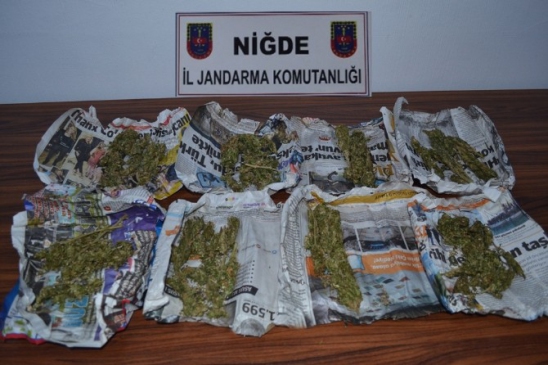 Edinilen bilgilere göre, Mersin’den Niğde’ye getirilerek pazarlanması planlanan yaklaşık yarım kilogramlık esrar maddesi Niğde İl Jandarma KOM ve Bor İlçe Jandarma Asayiş ekiplerinin yaptığı operasyonla Kemerhisar Beldesi girişinde ele geçirildi. Gece saat 01:00 sularında yapılan operasyon sonucunda esrar maddesini taşıyan M.A ve M.Ö isimli iki şahıs gözaltına alındı.