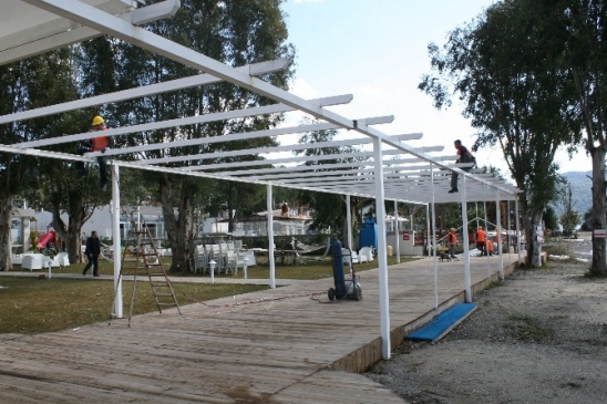 Marmaris’te şikayet üzerine projesine aykırı yapıların yıkımları tüm hızıyla sürüyor. Hafta başında yıkımların ilk adresi barlar sokağı girişindeki bir işletmeydi. Marmaris Belediyesi Fen İşleri ile yıkım ekipleri sabahın erken saatinde iş makineleri ile Tepe mahallesi Barlar Sokağı girişindeki bir bar işletmesinin bahçesine geldi. İşletmenin ön bahçesinde ki beton ve ahşap zemin Anıtlar kurulu ve belediye encümen kararıyla projesine aykırı olduğu gerekçesiyle yıkıldı.