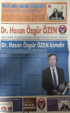 AK Parti Zonguldak Milletvekili aday adayı Dr. Hasan Özgür Özen seçim kampanyasında bir ilke daha imza atarak, kendi adına bastırdığı seçim gazetesini dağıttı.