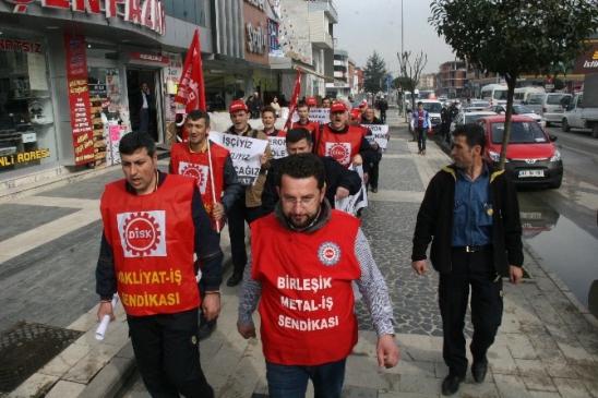 Nakliye iş Sendikasına bağlı işçiler tepkili. İşçiler tepkilerini dile geçirmek için yaklaşık 2 kilometre yol yürüdüler Merkez postane önünde basın açıklaması yaptılar.