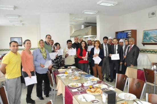 Konuşmaların ardından kursiyerlerin hazırladıkları ürünler sunuldu ve aşçılık kursunu başarıyla tamamlayan 14 kursiyere sertifikaları verildi.
