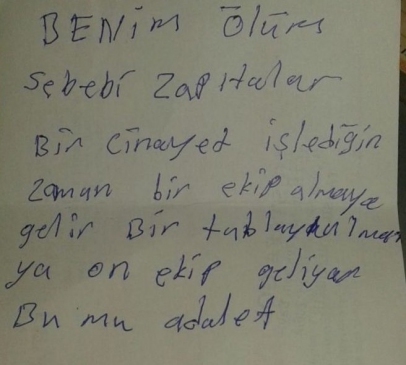 Adana’da tablada kestane ve Antep fıstığı satarak geçimini sağlayan seyyar satıcı, "Benim ölüm sebebim zabıtalar. Bir cinayet işlendiği zaman bir ekip almaya gelir, bir tablayı almaya on ekip gelir, bu mu adalet" yazıl bir not bırakıp intihar etti.