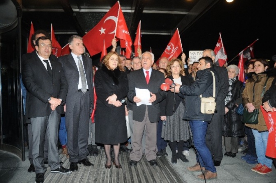 Vatan Partisi Genel Başkanı Doğu Perinçek ve beraberindekiler uçağa binmeden önce Atatürk Havalimanı VIP Salonu önünde bir basın açıklaması yaptı. Perinçek, "Suriye Devlet Başkanı Beşar Esad’ın daveti üzerine Şam’ı ziyaret ediyoruz. Heyetimiz Suriye ile barış ve kardeşlik isteyen bütün milletimizin özlemlerinden kuvvet ve yetki almaktadır" dedi. 3 Mart’ta Türkiye’ye dönüş yapacak olan heyette yer alacağı açıklanan Eskişehir Milletvekili Süheyl Batum’un, annesi Rezan Batumlu’nun hayati tehlikeyle hastaneye yatırılması nedeniyle son anda heyetten çıkarıldığı belirtildi.