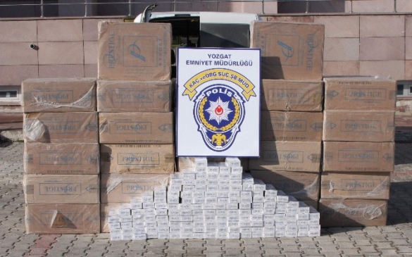 Yozgat Emniyet Müdürlüğü Kaçakçılık ve Organize Suçlarla Mücadele Şube Müdürlüğü ekipleri Muslubelen mevkiinde yaptıkları uygulamada şüphelenerek durdurdukları panelvan bir minibüste 15 bin paket gümrük kaçağı sigara ve 3 adet gümrük kaçağı cep telefonu ele geçirdi. Olayla ilgili F.T., N.T., M.S.T. ve S.G. isimli şahıslar gözaltına alındı. Adliyeye sevk edilen zanlılar Cumhuriyet Savcılığı tarafından alınan ifadenin ardından serbest bırakıldı.