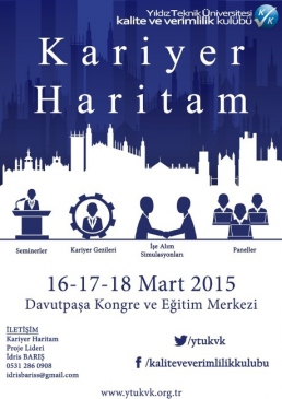 6’ncı Ulusal Kariyer Haritam, 16-18 Mart 2015 tarihleri arasında Yıldız Teknik Üniversitesi Davutpaşa Kongre ve Kültür Merkezi’nde düzenlenecek.