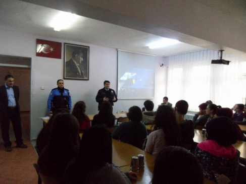 Mustafa Şeker Anadolu Lisesi konferans salonunda 9 ve 10.’uncu sınıf öğrencilerine verilen seminerde, TDP Büro Amiri Adem Özay Cengiz, güvenli internet kullanımı konusunda bilgiler verdi. İnternet tuzakları ve bu tuzaklardan korunma yollarını anlattı. Emniyet Amiri Cengiz, "İşlenen suçlar ve suçların cinslerine bakıldığında, internet üzerinden işlenen suçlar günümüzde artış gösteriyor. Kötü niyetli kişiler, sosyal paylaşım sitelerinden kişilerin bilgilerine ulaşabilmektedir. Sosyal paylaşım sitelerinin güvenli kullanımı ile birçok mağduriyetin önüne geçebilir. Gerçek hayatta fotoğraf, kimlik bilgisi, adres, telefon numarası ve doğum tarihi gibi kişiye has bilgilerin sosyal paylaşım ortamlarında hiç kimseye verilmemesi gerekiyor” dedi.